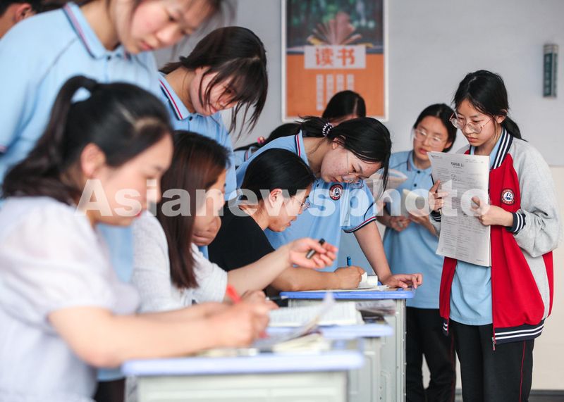 图片说明:5月27日晚上,在河南省焦作市博爱县第一中学,教师们“摆摊”,为学生答疑解惑。