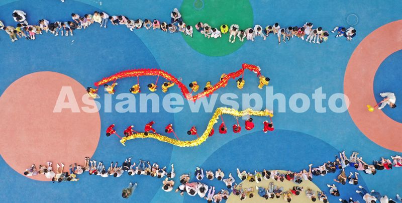 2024年5月30日,浙江省台州市仙居县迎晖幼儿园的孩子们在舞龙表演,喜迎六一节到来。