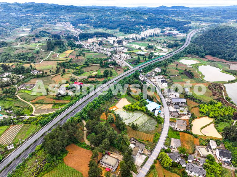 图片说明:2024年5月30日,贵州省黔西市绿化白族彝族乡大海子村,夏雨后田块、湖泊水充盈,远山层峦叠翠,民居、公路干净整洁,构成一幅生机盎然的田园生态画卷。