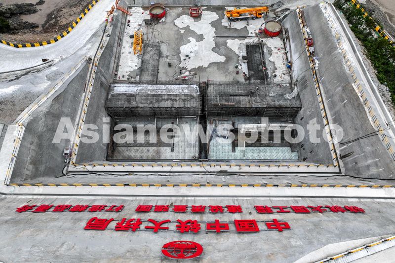 2024年5月30日傍晚,甬舟铁路西堠门公铁两用大桥册子侧锚碇基础一景。