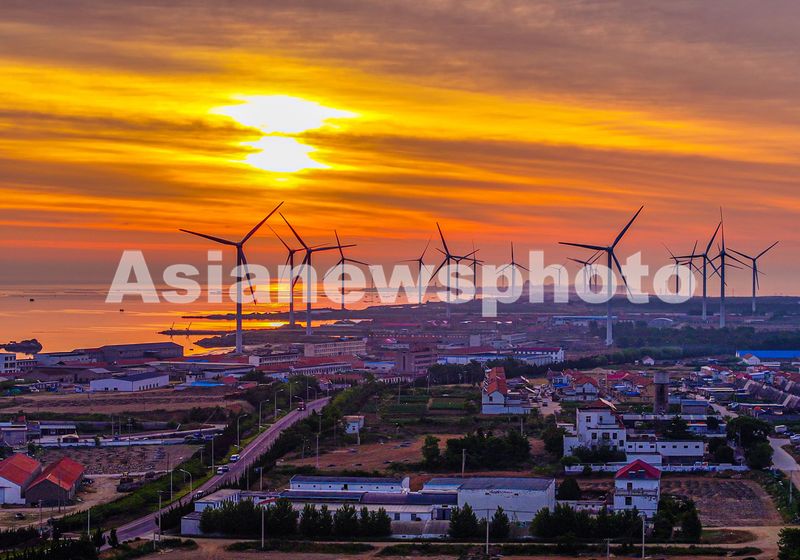 2024年6月5日,山东省荣成市石岛管理区桑沟湾海洋牧场出现绚丽朝霞,渔民驾驶渔船出海作业,与大海、日出、风力发电机交相辉映,构成一幅绚丽多姿的生态画卷。 荣成市桑沟湾位于北纬37°,水质优良,海产丰富,湾内现有我国北方最大规模的海上生态网箱养殖区,被评为国家级休闲渔业示范基地。近年来,荣成市在发展海洋经济的同时,积极探索碳汇产业,推广浅海多营养层级生态养殖新模式。
