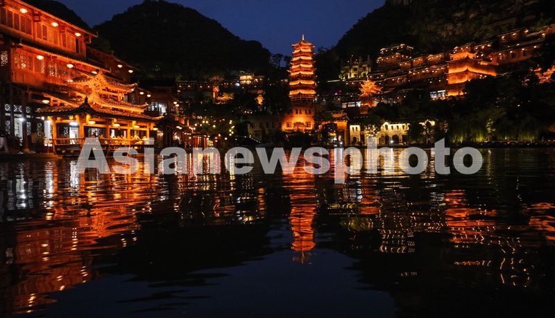 图片说明:6月9日拍摄的贵州省黔西南布依族苗族自治州兴义市峰林布依景区夜景。