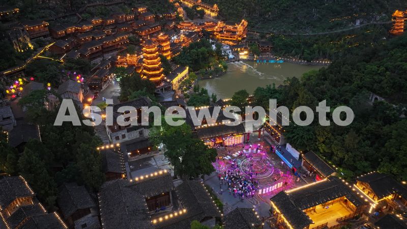 图片说明:6月9日拍摄的贵州省黔西南布依族苗族自治州兴义市峰林布依景区夜景。