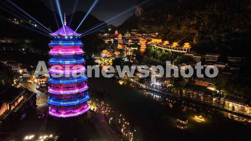 图片说明:6月9日拍摄的贵州省黔西南布依族苗族自治州兴义市峰林布依景区夜景。