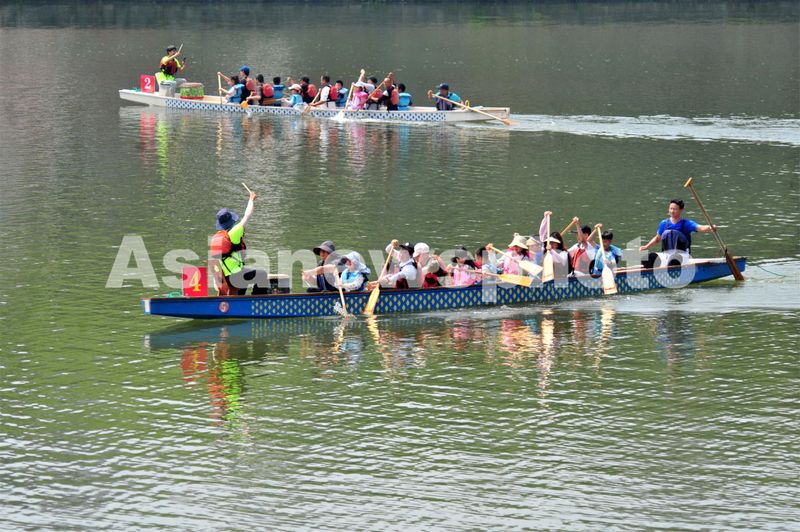 2024年6月10日,在湖北省宜昌市夷陵区河心公园的水上乐园,一些家长带着小孩参加亲子划龙舟趣味竞技比赛,“沉浸式”体验原汁原味的端午习俗。