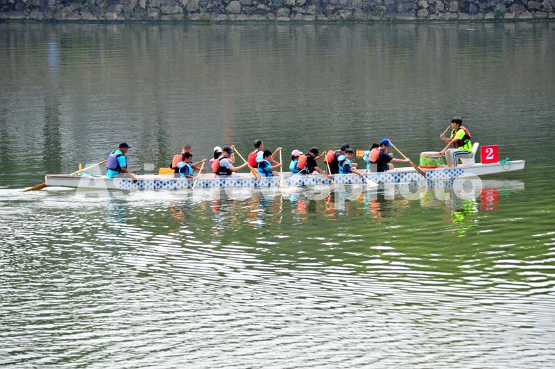 2024年6月10日,在湖北省宜昌市夷陵区河心公园的水上乐园,一些家长带着小孩参加亲子划龙舟趣味竞技比赛,“沉浸式”体验原汁原味的端午习俗。