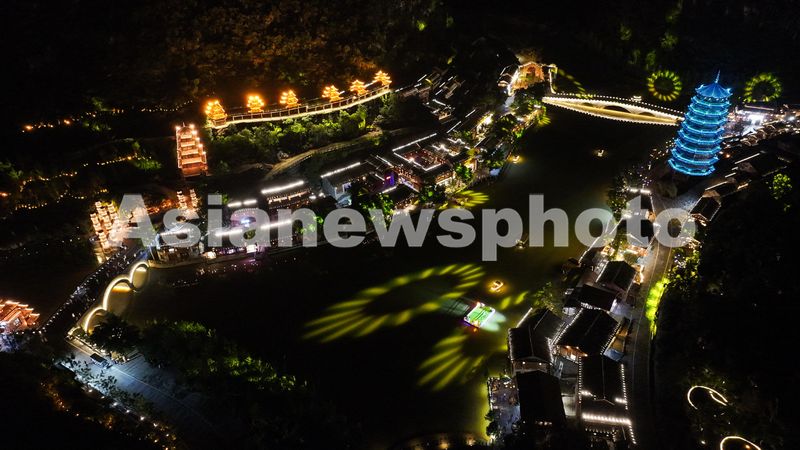 图片说明:6月9日拍摄的贵州省黔西南布依族苗族自治州兴义市峰林布依景区夜景。