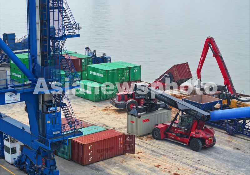2024年6月9日拍摄的忙碌的江苏南通港通海港区集装箱作业区。 据南通市交通运输局提供的信息,2024年前5月,南通港完成货物吞吐量1.2亿吨,集装箱吞吐量完成102.5万标箱,同比增长40.2%。通海港区是海轮进入长江12.5米深水航道后北岸的第一个港区,也是江苏省南通市重点打造的现代化集装箱港区和江海联运枢纽港,投产运营以来,集装箱吞吐量逐年增加。