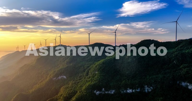 图片说明:2024年6月13日,江西省瑞昌市洪下乡蜈蚣山风电场,一台台发电机矗立在群山、云海之中,勾勒出一幅仙境般的美丽画卷。