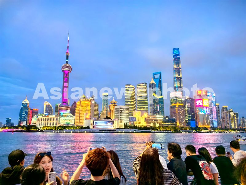 2024年6月10日晚,夜游上海外滩的各地游客让黄浦江畔、南京路等地人头攒动。