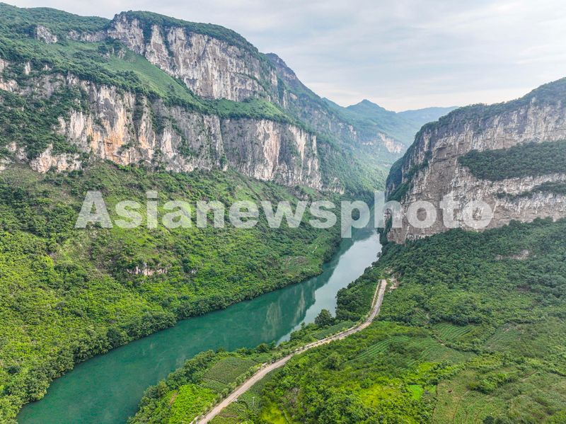图片说明:2024年6月14日,航拍贵州省黔西市大关镇前进社区和贵阳市清镇市新店镇岩湾村之间的乌江上游鸭池河段,水清岸绿景美如画。
