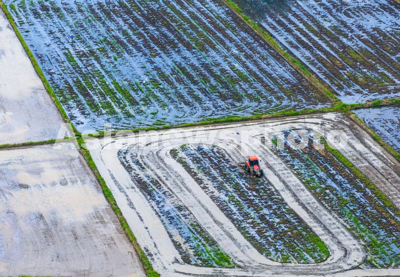 图片说明:2024年6月21日,在安徽省芜湖市繁昌区平铺镇茶冲村,农机专业合作社农机手驾驶拖拉机为对农户提供耕田服务。
