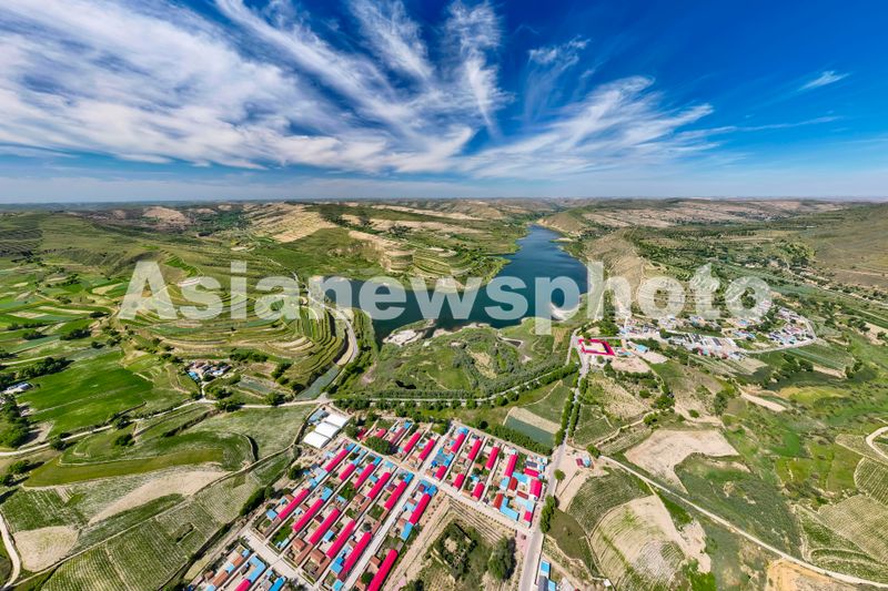 2024年6月23日,宁夏回族自治区固原市西吉县震湖乡,西吉震湖清澈碧透,梯田景观层层叠叠,与民宿、村落、绿植等,构成一幅夏日山水交融的美丽生态画卷。