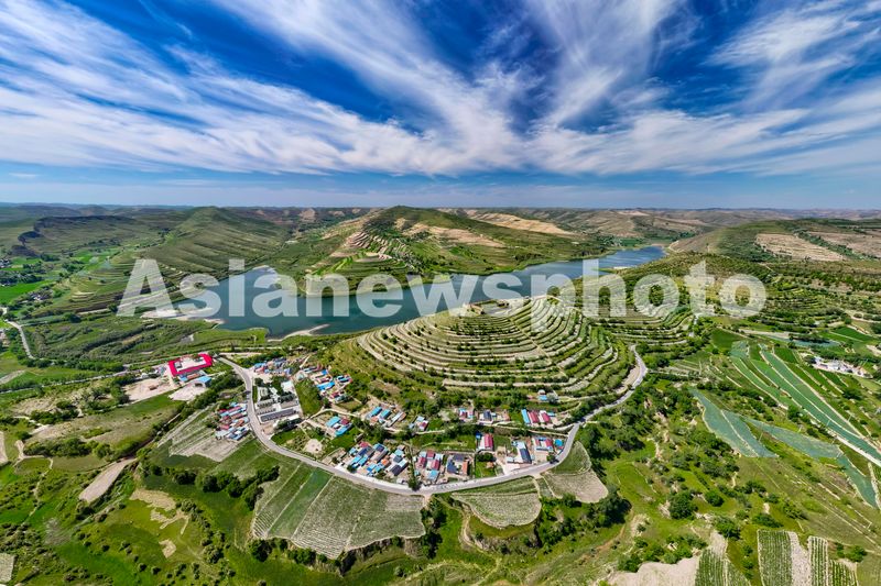 2024年6月23日,宁夏回族自治区固原市西吉县震湖乡,西吉震湖清澈碧透,梯田景观层层叠叠,与民宿、村落、绿植等,构成一幅夏日山水交融的美丽生态画卷。