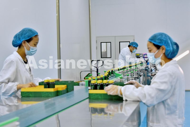 图片说明:2024年6月22日,在江苏省盐城市响水县的江苏云响仙露生物科技有限公司,工人在铁皮石斛饮品生产线上忙碌。