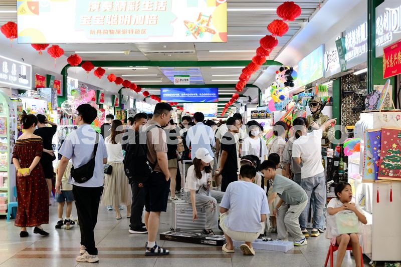 图片说明:2024年6月29日,浙江金华,义乌国际商贸城玩具购物旅游特色区,络绎不绝的国内外客商和游客纷至沓来,洽谈、交易十分红火。