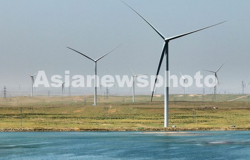 2024年6月29日,俯瞰位于宁夏银川市一处清洁能源基地,一座座电力风机与戈壁荒滩、矿井水域相映成景,源源不断地将绿色电能输送到千家万户。