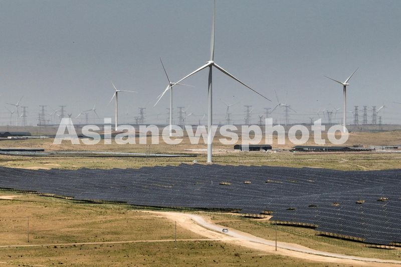 2024年6月29日,俯瞰位于宁夏银川市一处清洁能源基地,一座座电力风机与戈壁荒滩、矿井水域相映成景,源源不断地将绿色电能输送到千家万户。近年来,宁夏电力部门坚持“全网统筹、保量稳率”,多措并举提升新能源消纳能力,不断助力国家实现“双碳”目标。