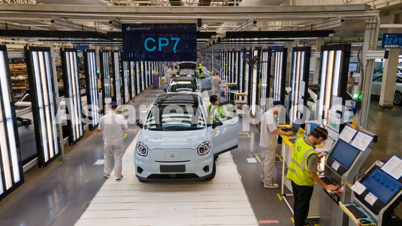 2024年7月2日,浙江省金华市新能源汽车小镇零跑汽车智能工厂车间里,新能源汽车正有序下线。