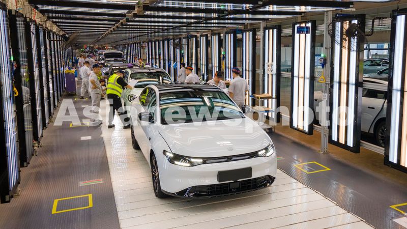 2024年7月2日,浙江省金华市新能源汽车小镇零跑汽车智能工厂车间里,新能源汽车正有序下线。