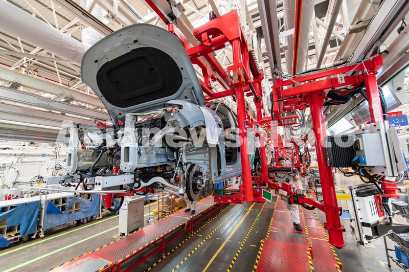 2024年7月2日,浙江省金华市新能源汽车小镇零跑汽车智能工厂车间里,新能源汽车正在装配中。