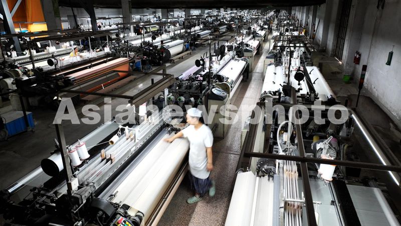图片说明:2024年7月2日,江苏海安,在全国首批农业产业化国家重点龙头企业——鑫缘茧丝绸集团股份有限公司,工人在坯绸织造车间赶制订单产品。