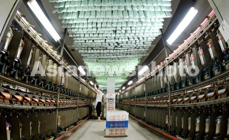 图片说明:2024年7月2日,江苏海安,在全国首批农业产业化国家重点龙头企业——鑫缘茧丝绸集团股份有限公司,工人在丝线准备车间忙碌。