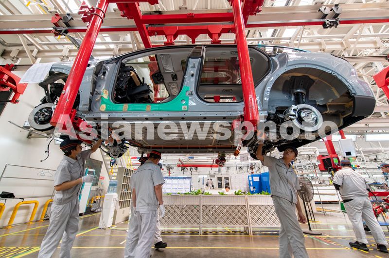 2024年7月2日,浙江省金华市新能源汽车小镇零跑汽车智能工厂车间里,新能源汽车正在装配中。
