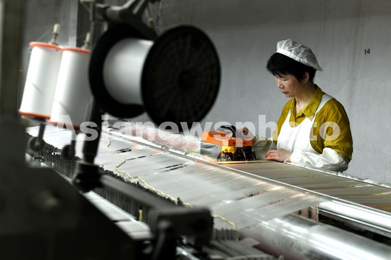 图片说明:2024年7月2日,江苏海安,在全国首批农业产业化国家重点龙头企业——鑫缘茧丝绸集团股份有限公司,工人在坯绸织造车间赶制订单产品。