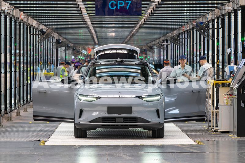 2024年7月2日,浙江省金华市新能源汽车小镇零跑汽车智能工厂车间里,新能源汽车正有序下线。