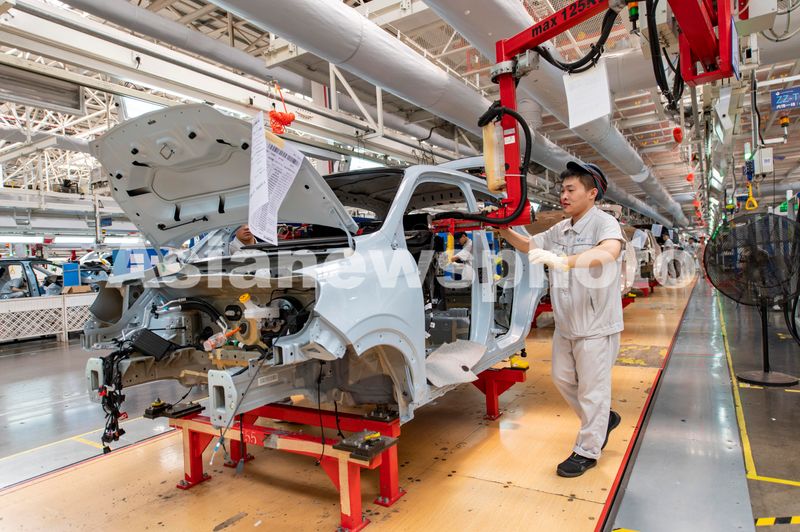 2024年7月2日,浙江省金华市新能源汽车小镇零跑汽车智能工厂车间里,新能源汽车正在装配中。