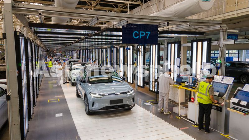 2024年7月2日,浙江省金华市新能源汽车小镇零跑汽车智能工厂车间里,新能源汽车正有序下线。