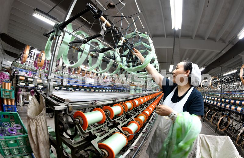 图片说明:2024年7月2日,江苏海安,在全国首批农业产业化国家重点龙头企业——鑫缘茧丝绸集团股份有限公司,工人在丝线准备车间忙碌。