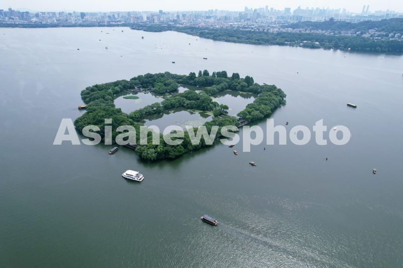 图片说明:2024年7月2日,游客乘坐游船游览杭州西湖。