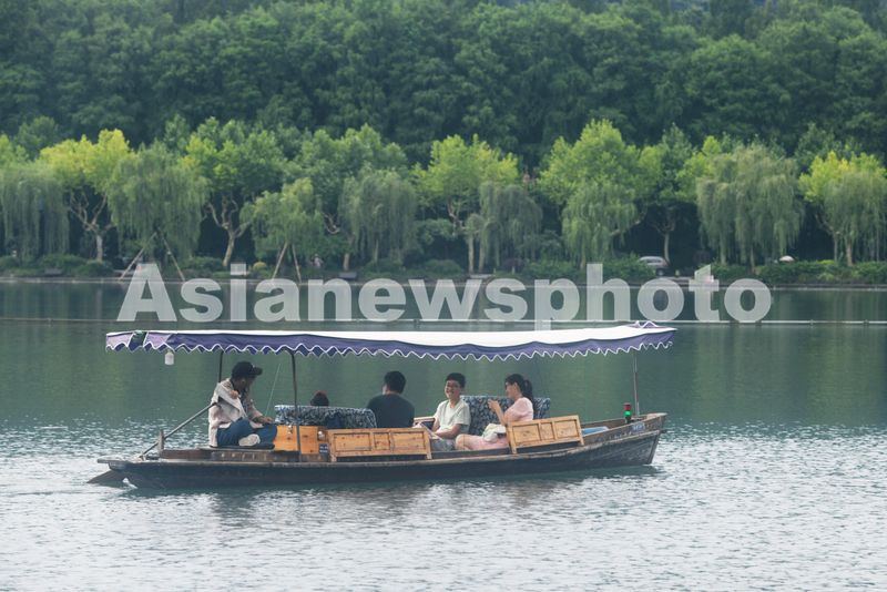 图片说明:2024年7月2日,游客乘坐游船游览杭州西湖。