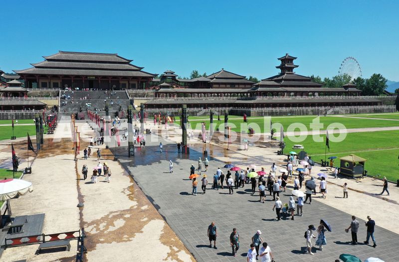 7月4日,游客在浙江省东阳市横店影视城秦王宫景区游玩。