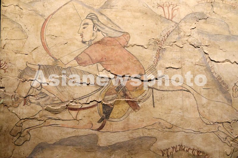 7月4日,拍摄山西省太原北齐壁画博物馆展出的壁画。