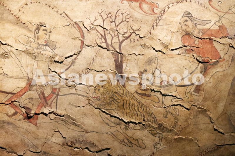 7月4日,拍摄山西省太原北齐壁画博物馆展出的壁画。
