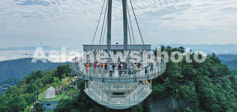 图片说明:2024年7月14日,游人在浙江省台州市仙居县神仙居景区游玩。