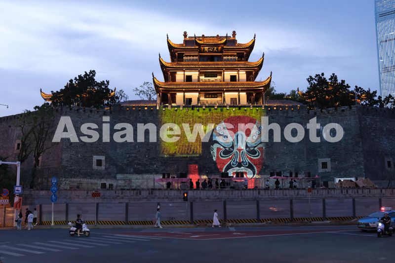 2024年7月15日晚,许多市民在长沙天心阁观看灯光秀调试,感受长沙文化以及光影魅力。