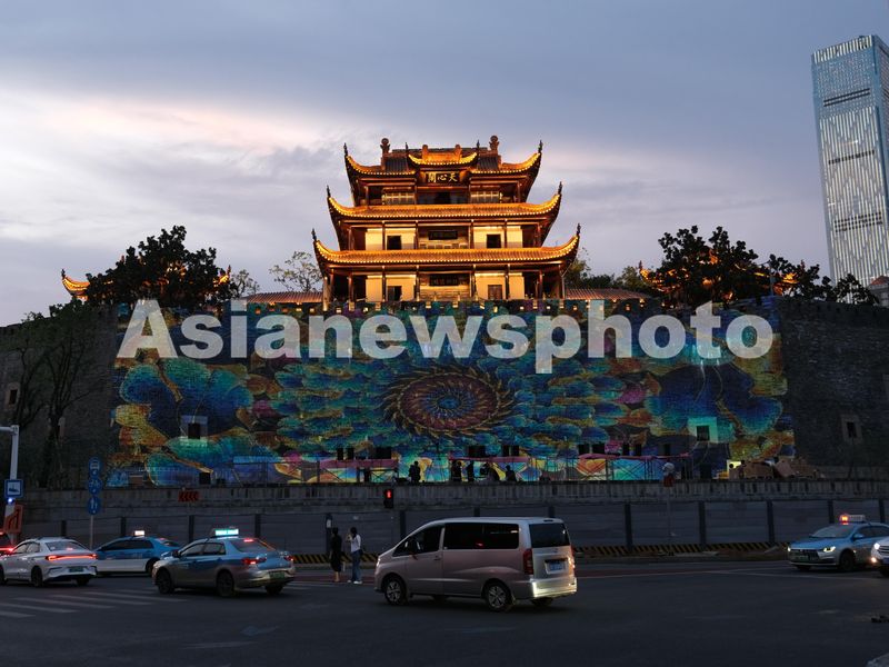 2024年7月15日晚,许多市民在长沙天心阁观看灯光秀调试,感受长沙文化以及光影魅力。