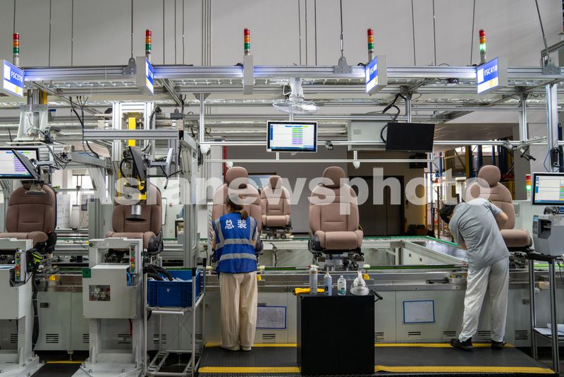 2024年7月17日,安徽省合肥市肥东县经开区继峰座椅(合肥)有限公司车间流水线上,工人们在生产蔚来汽车订购的座椅。