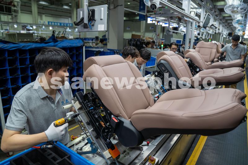2024年7月17日,安徽省合肥市肥东县经开区继峰座椅(合肥)有限公司车间流水线上,工人们在生产蔚来汽车订购的座椅。