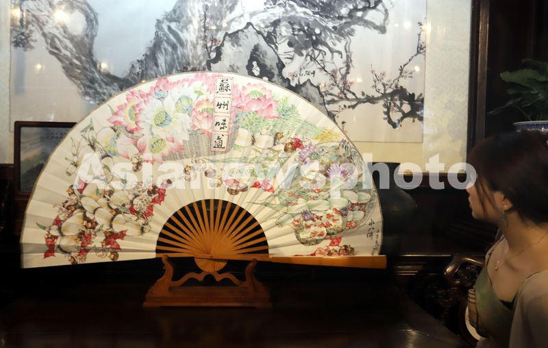 2024年7月18日,游客在苏式扇艺展上参观。近日,“苏式扇艺展”在江苏苏州古典园林狮子林举办,展览以“狮林真趣 雅物清风”为主题,展出18位艺术家创作的75件苏扇和扇面作品,为游客奉献一场精美绝伦的扇艺文化大餐。此次展览将持续至8月15日。