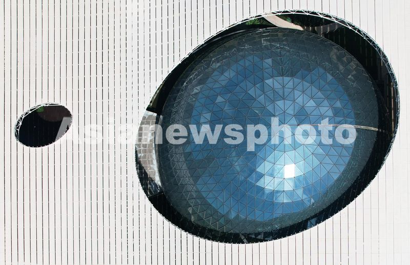 图片说明:2024年7月18日,从空中俯瞰杭州国际博览中心的空中花园。