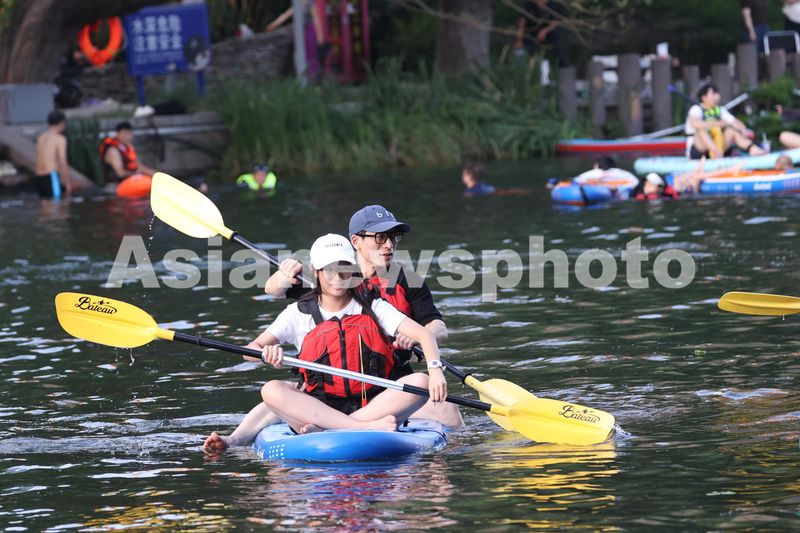 2024年7月20日,高温来袭,不少桨板和皮划艇爱好者在北京亮马河水面上划行,享受运动快乐,觅夏日清凉。