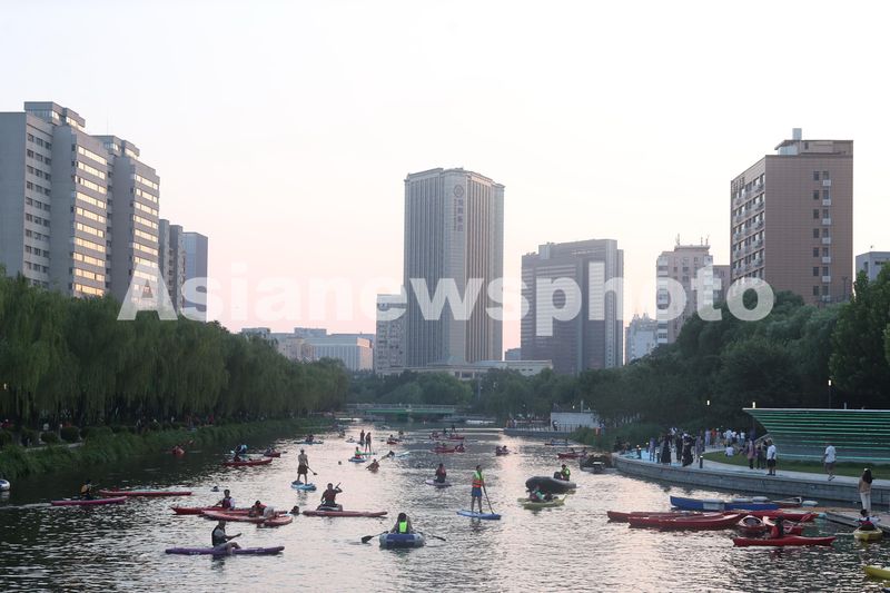 北京:桨板爱好者在亮马河亲水觅清凉
