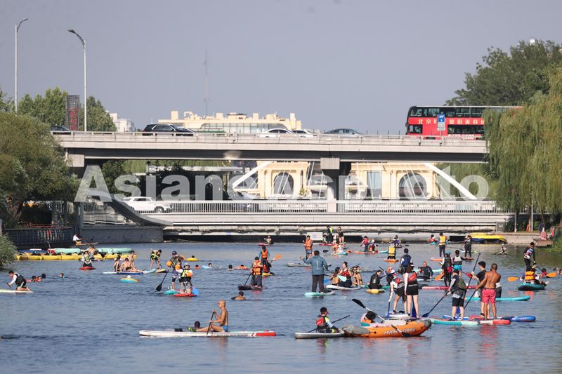 北京:桨板爱好者在亮马河亲水觅清凉