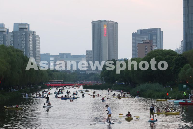 北京:桨板爱好者在亮马河亲水觅清凉