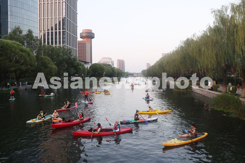 北京:桨板爱好者在亮马河亲水觅清凉